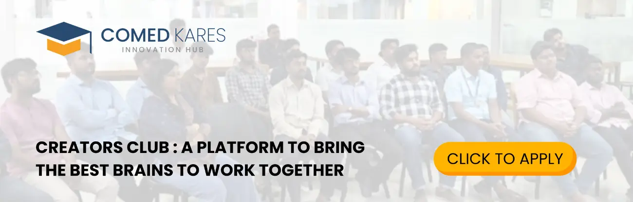 Creators Club brings together a select group of motivated students who collaborate on projects, prototypes, and innovative ideas across all ComedKares hubs. Through regular monthly meetups, these students actively support ComedKares events, work on real-world problem statements, and contribute to building a strong, connected community of innovators. The Creators Club plays a vital role in strengthening ComedKares’ mission of upskilling engineers in emerging technologies by fostering hands-on learning, collaboration, and innovation-driven thinking.